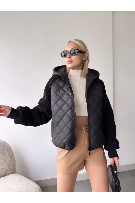 Veste doudoune bi matière à capuche